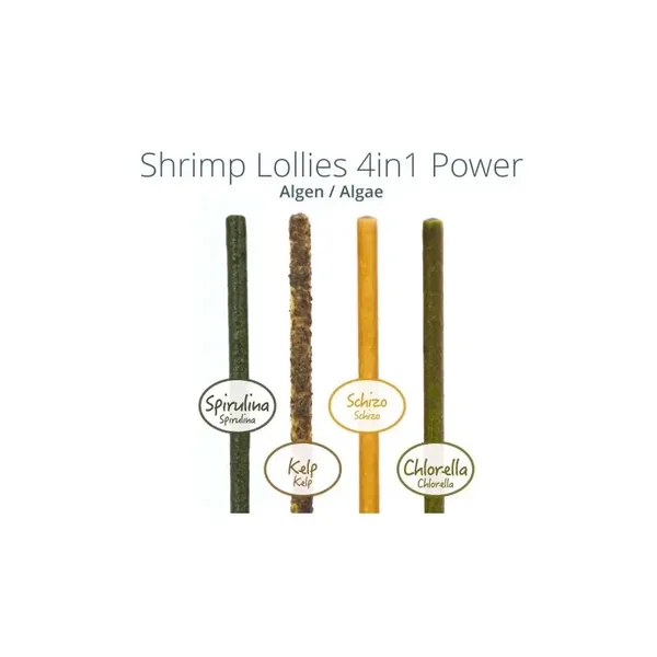 Viele wichtige Mineralien und Spurenelemente sind in unseren Shrimp Lollies - 4in1 Power (Futter-Sticks) enthalten, welche eine klasse Ergänzung zum Hauptfutter für Deine Garnelen darstellen.