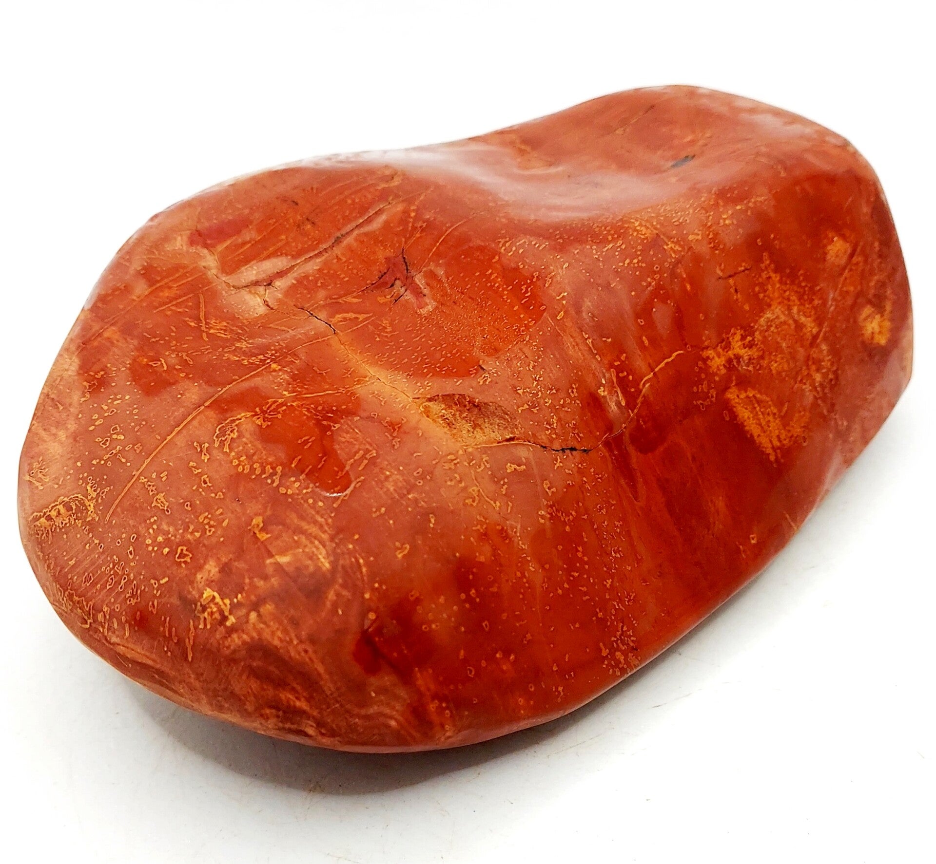 - polierter Stein mit wunderschöner, hellroter Oberfläche und grünen Mustern