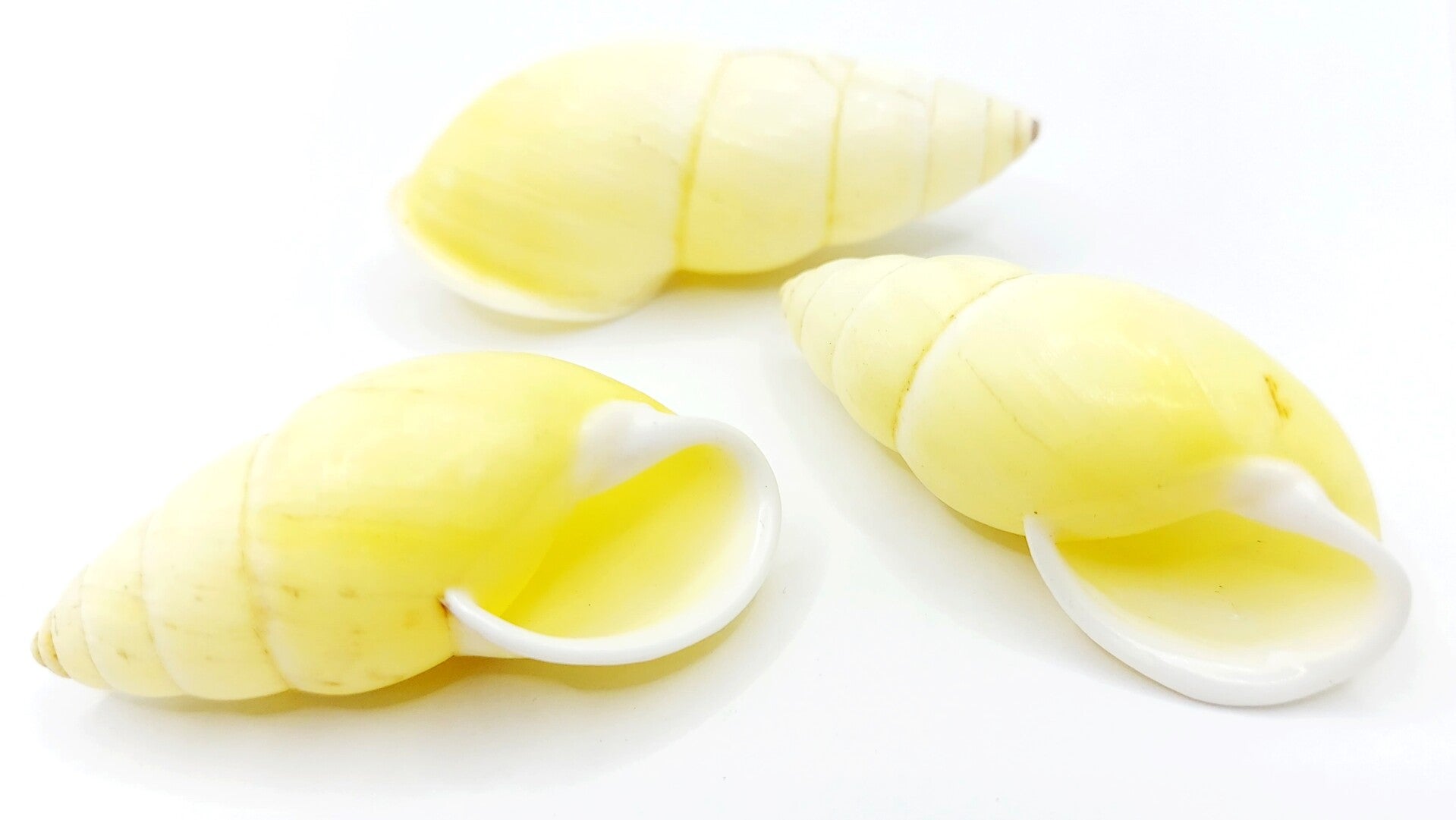 Die Schneckenhäuschen sind bis zu 5 cm groß und erstrahlen in einem sanften Gelbton.
